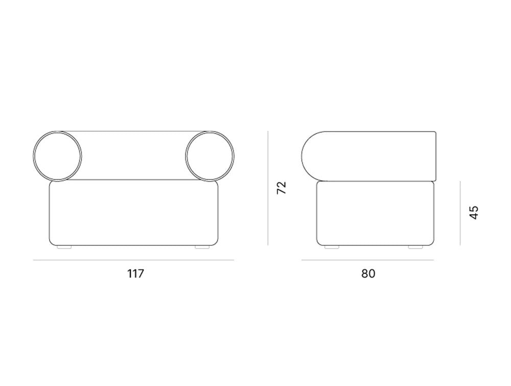 The Abbey Round Soft Armchair embodies comfort and harmony through its sinuous form and vibrant hues. Its versatile design encourages playful and unconventional use, allowing relaxation in various positions. Handcrafted visible stitching adds a human touch, enhancing the collection's warm and inviting design ethos.