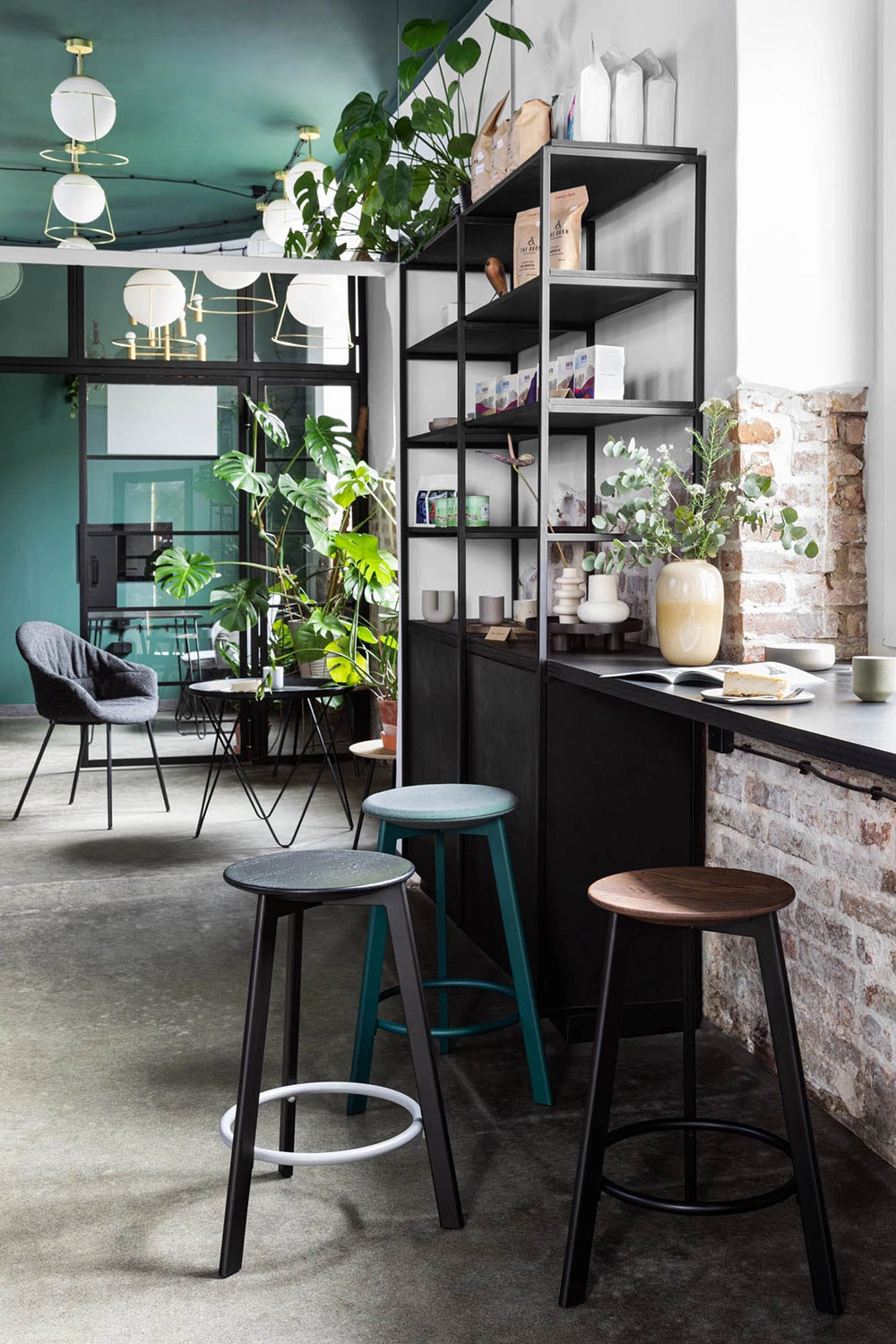 Belem is a collection of modern bar stools that will fit in perfectly both in residential spaces and commercial areas such as hotels, restaurants and other food venues, and offices. Belem bar stools stand out with the unique lenticular shape of the seat with a concave surface ensuring a high level of user comfort. The steel legs, made of a semi-oval section, are joined together by a round rim adding rigidity to the structure and providing comfortable support for the legs. Both the steel base and the rims are available in a wide selection of colours from Noti's colour chart. There is also an option of combining different colours for the base and rim.