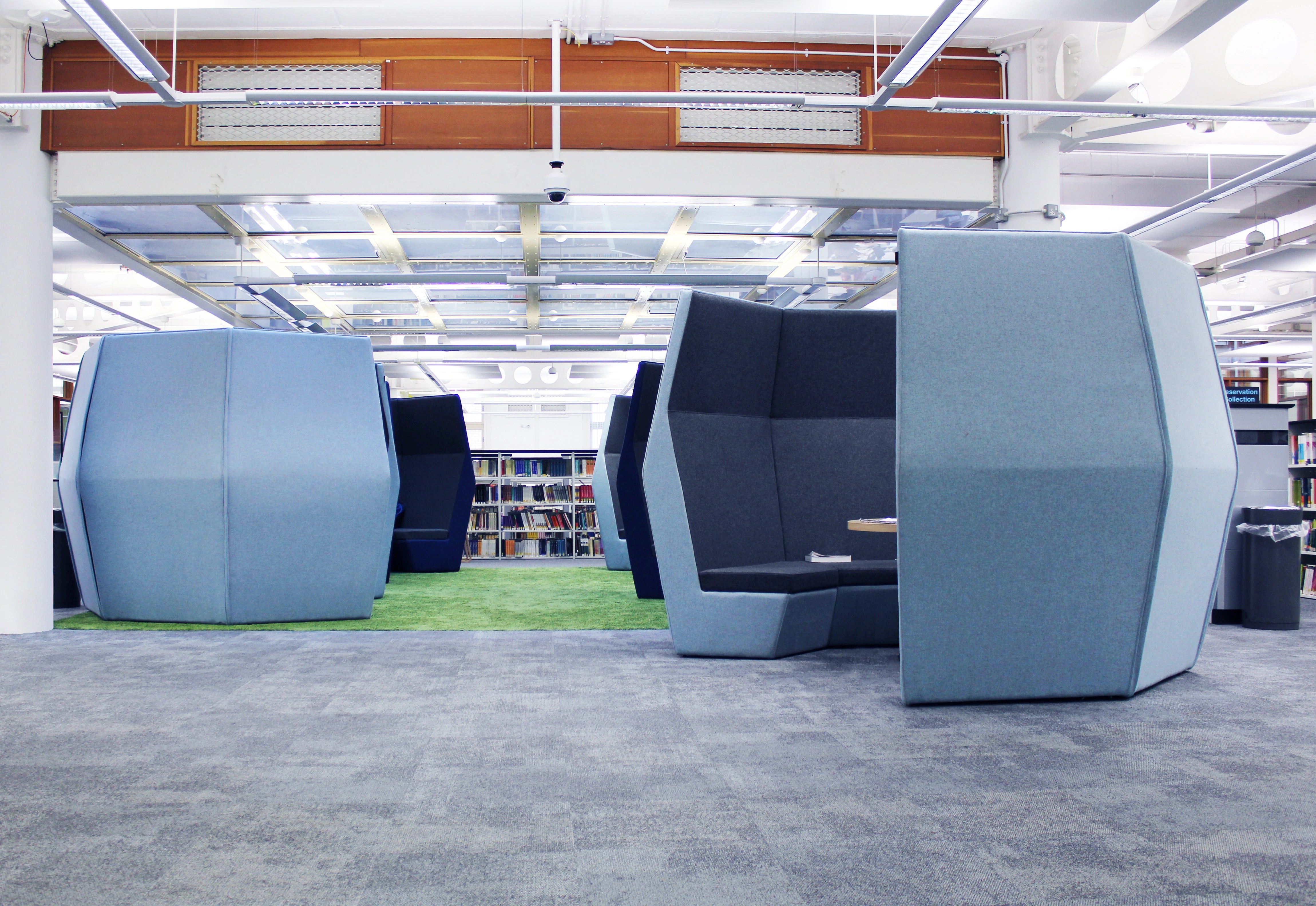 Meet Ben 6-Person Low-Back Open Collaboration Pod. Ben makes a statement. Using the same side profile as his friend Bill, the collaborative dens are great for seating up to 7 people. The Tabatha table beautifully gives a drop-down space for group working. Ben dens are great for universities, libraries and large open-plan offices.