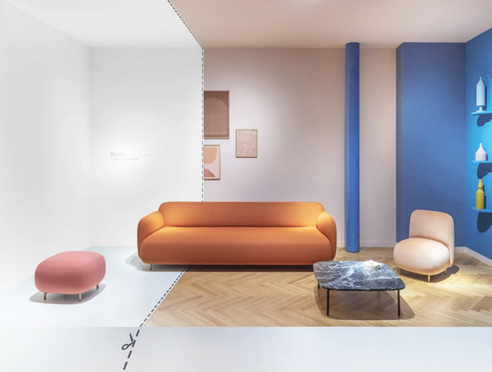 A three-seater sofa that, while maintaining the collection's friendly and reassuring design, adds further comfort to the seat, thanks to a combination of for different densities of polyurethane foam supported by elastic belts, offering greater softness for a domestic environment in which one feels truly pampered. The sofa is incredibly versatile: not only is it available with or without armrests, but several seating modules can be positioned together.