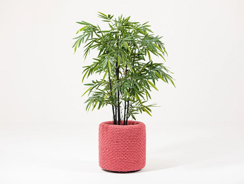 BuzziKnit Planter blends acoustic performance with stylish greenery. Made from high-density foam, it absorbs noise, enhancing open spaces like offices and homes. The handcrafted knit cover by Maison Tricot, made from 100% recycled PET, adds a sustainable touch. Designed as a functional room divider, it promotes well-being while complementing modern interiors with vibrant colours and eco-conscious materials.