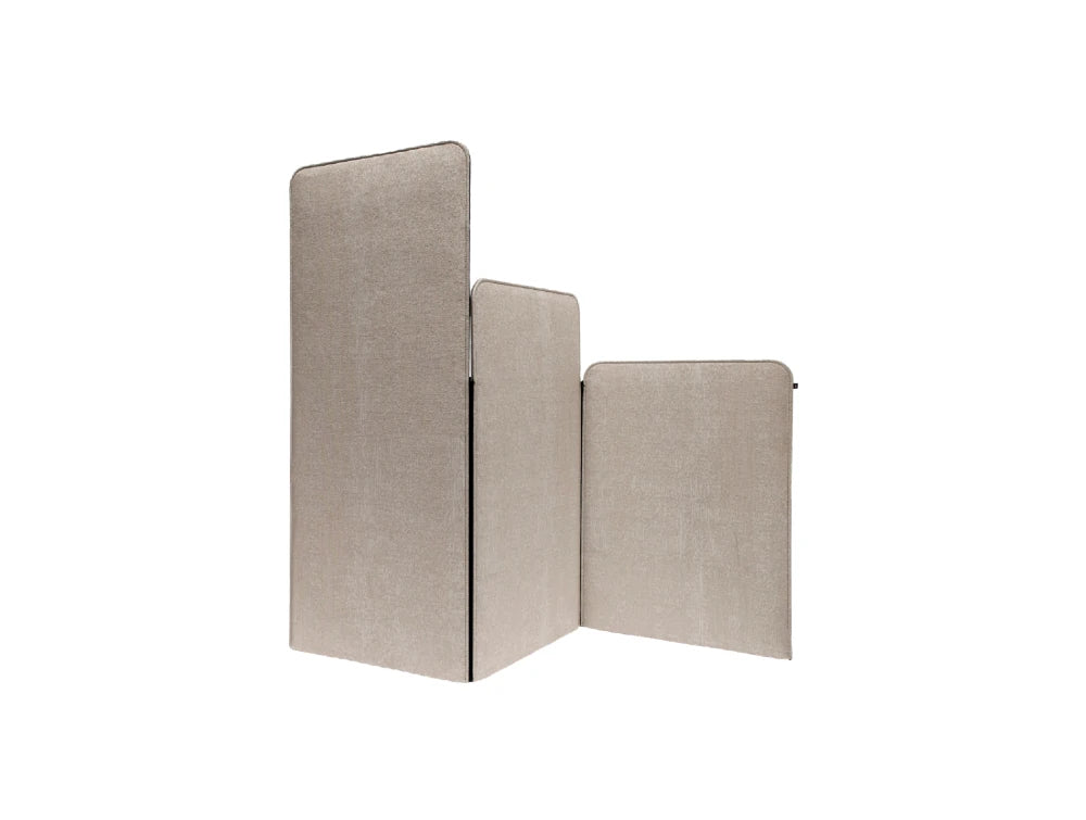 Combine different heights and fabrics of this folding screen to create a vibrant effect. This is not your average room divider, but a true designer piece with acoustic qualities. BuzziScreen Mix combines different heights and BuzziFabrics (and select collections by Kvadrat) to give edge end result. Make it even more playful by adding industrial zippers between panels. Split your space with office divider and create distinct areas separated from their nearby environments.