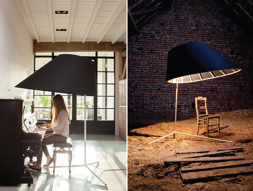 BuzziShade is a noise-reducing freestanding lighting fixture that accommodates the demand for both sound absorption and lighting solutions