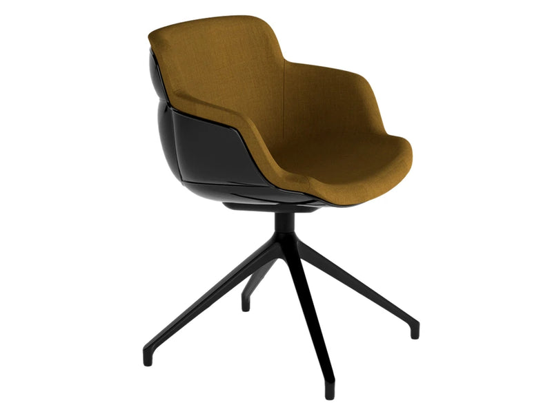 The Choppy Sleek chair with a Trestle Base features a glossy solid frame, hard techno polymer shell with comfortable upholstered cushions. The finish can be chosen from various fabrics & leathers available in several colours.