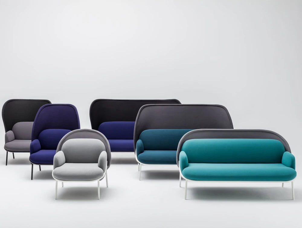 The Divan Sofa with High Mesh Shield features a comfortable upholstered soft cushion seat design in a durable fabric offered in various colours. The metal frame of the stylish sofa is offered in a black or white finish.