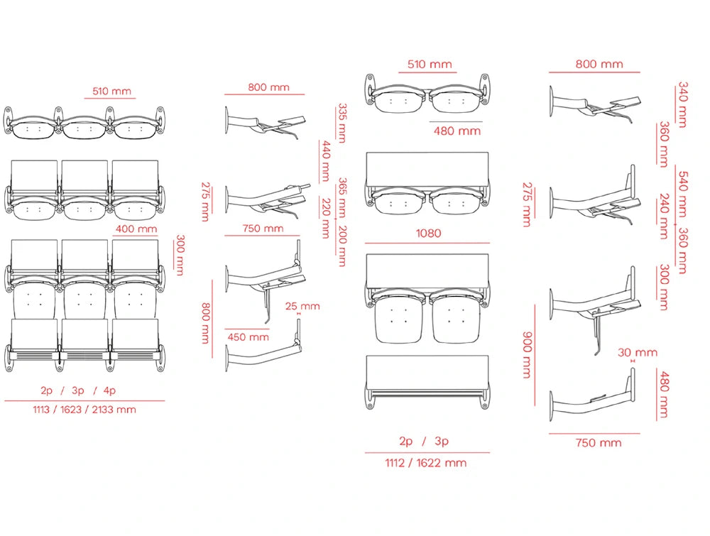 Gate Monoblock is a system of banks and seats, fully customizable, and ideal for university and convention halls. The seats are equipped with a tilting mechanism with a special braking system that cushions the return movement. Feet for floor fixation can be adapted to both straight, stepped as well as sloping floors.
