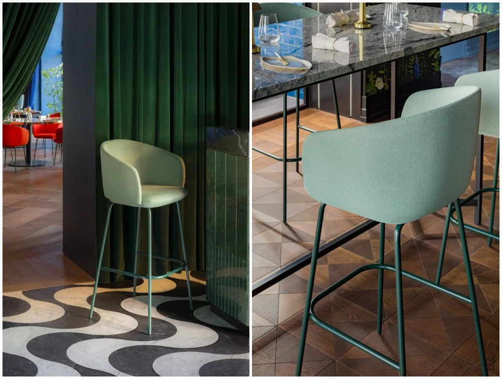 With the onset of popularity in bars and restaurants at the dawn of the XX century, high stools have consistently stormed their way into office canteens and residential interiors. Typically high stools feature a narrow and simplistic design, yet Grace takes on a different approach. The fully upholstered backrest integrated with armrests and the seat embrace the user providing superb comfort. Grace invites to take a seat for longer. Elegant framework, in two heights, ensures balance and stability, while the abundance of configuration options allows for great adaptability. Grace offers an armchair experience in a high stool edition.