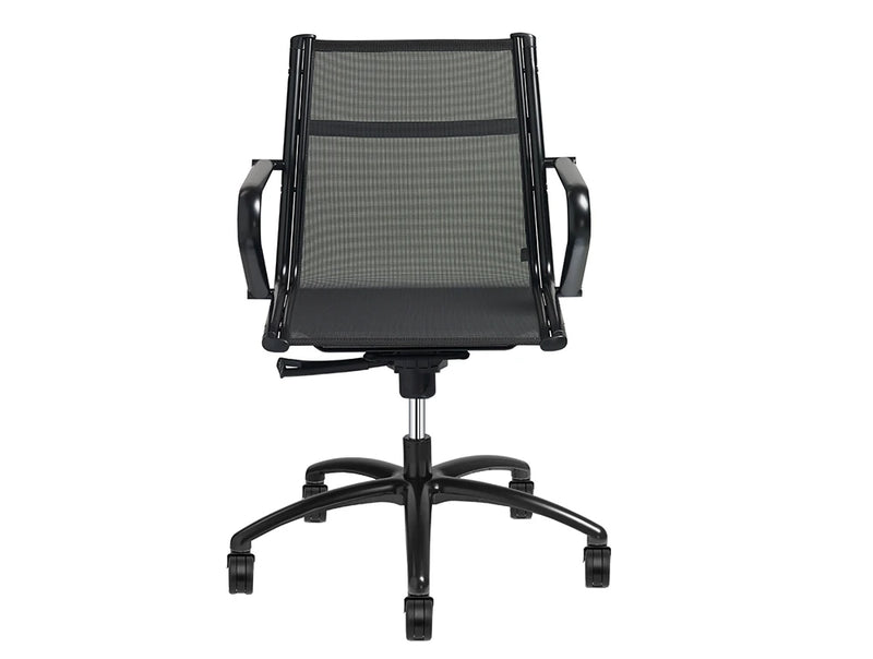 Ice is the collection of seating for executive and managerial offices, also including a model suitable for meeting rooms and waiting rooms. Featuring a fine covering in black breathable mesh, Ice is outlined by an understated outer frame in tubular steel, available in chromed or gloss black finish. The armrests built into the structure are coordinated with the seat, with the possibility of top upholstery in three different finishes.