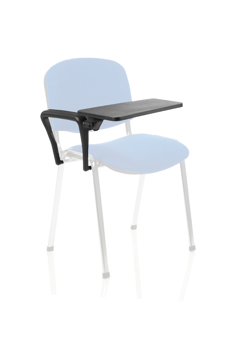 A foldaway writing tablet with a wipe clean polymer surface that is easily fitted to the ISO arm. The Left handed tablet is from a different supplier and has a different design/ appearance to the right handed tablet.