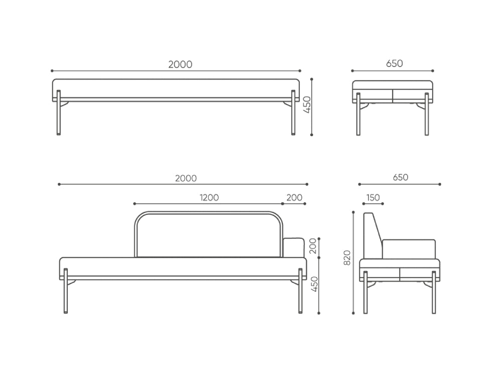 Leaf_pod's sofas and tables are free-standing sit modules in three lengths with backs and armrests in various positions. Connecting tables or desktops create a functional addition to sofas. It is possible to order a media port.