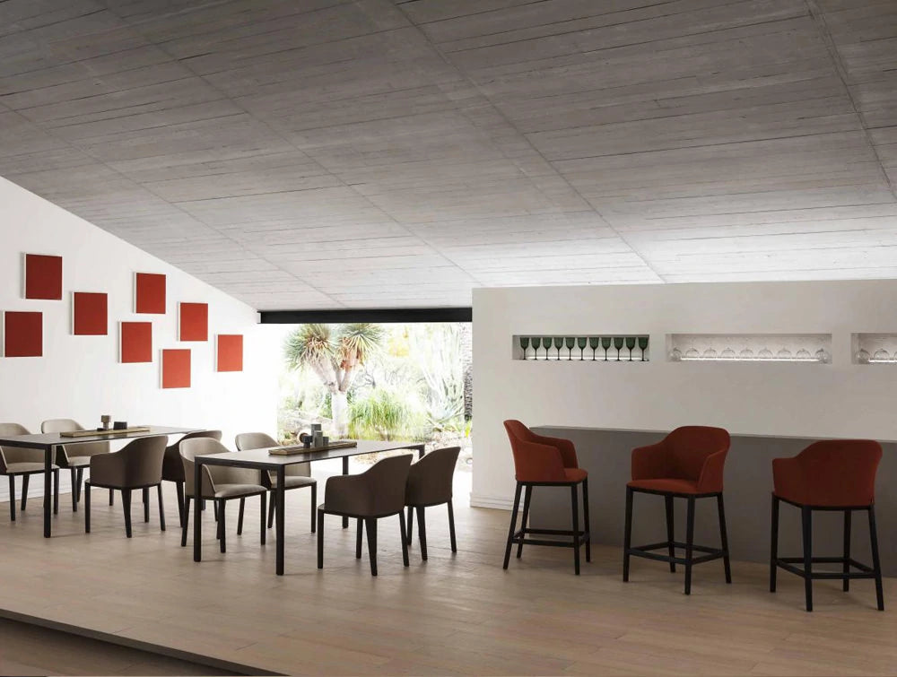 The Manaa armchair offers an elegant design and is fully customisable. Choose from various fabrics and leather finishes. Several chair frames are available: wooden legs, techno polymer frame & polished or coloured aluminium legs.