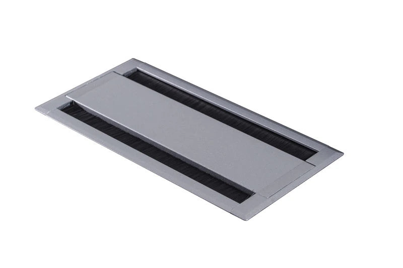 Brushed metal cable port for cable management and stylish "Y" chrome legs