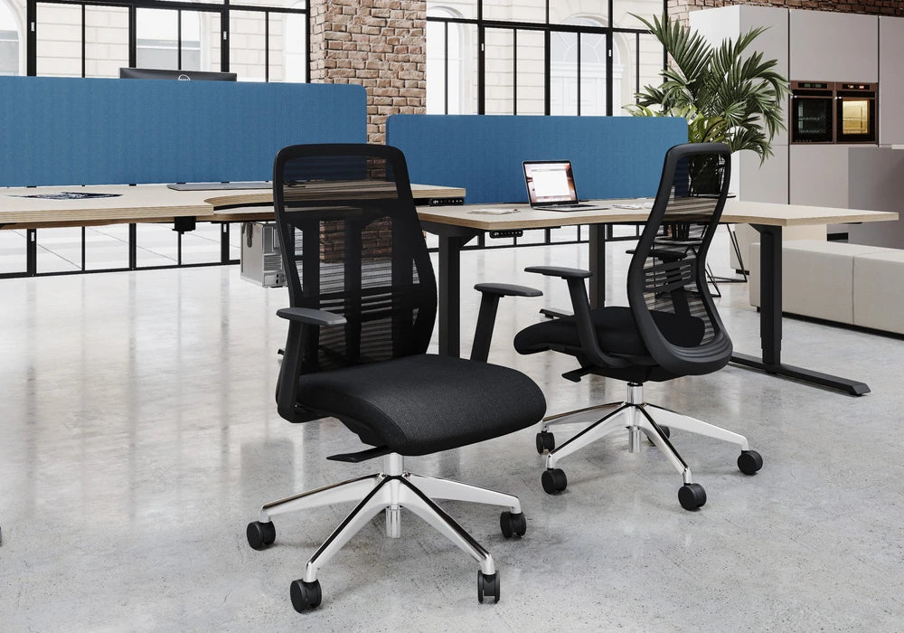 The NV chair is designed with comfort, style and quality. Available in Black and Grey frame finish with and without a headrest option. The expanded NV range now includes five additional seat fabrics from the Medley range. The modern ergonomic design of the NV chair makes it a great option for any office environment. The backrest ensures maximum flexibility and comfort while working at a desk.