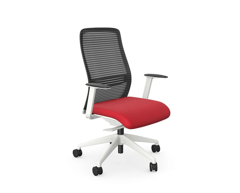 The NV chair is designed with comfort, style and quality. Available in Black and Grey frame finish with and without a headrest option. The expanded NV range now includes five additional seat fabrics from the Medley range. The modern ergonomic design of the NV chair makes it a great option for any office environment. The backrest ensures maximum flexibility and comfort while working at a desk.