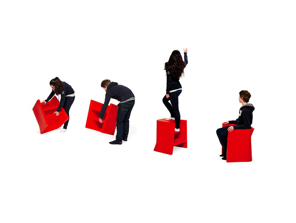 Fun is a serious business. Like us, while lovers of a colourful life, we never forget to be scrupulous. Upgrade is a versatile and dynamic outdoor element that stimulates the imagination and brightens the day, simplifying it. A comfortable armchair with perfect shapes that quickly transforms into a safe ladder, an excellent ally in any environment. Upgrade is obtained thanks to the rotational technology; it is made of fully recyclable plastic material and can hold 130kg.