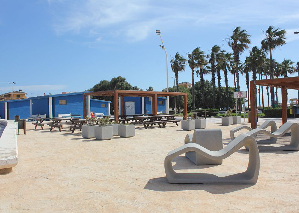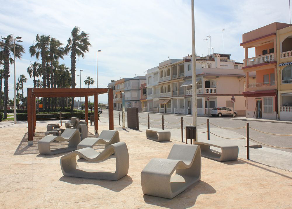 Made of precast textured granite grey concrete, the Petrus Outdoor Deck Chair is a chic, sculpture-like seating option. It stands out in any outdoor environment thanks to its ergonomic design and eye-catching appearance. The freestanding design allows for flexible positioning and doesn't require anchoring when used alone or in groups. In any setting, it effortlessly combines comfort, style, and functionality thanks to its long-lasting construction. The textured surface offers strong resistance to outside elements and a distinctive appearance.