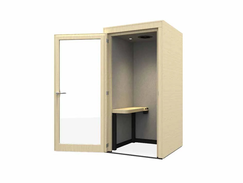 Residence Max creates an iconic enclosure within the workplace, providing a serene sanctuary amidst the current workplace conditions. This space-efficient pod provides private space using a minimum floor area. This product comes with a glazed door, allowing light to continue to shine through and a birch plywood finish, providing a raw, natural aesthetic. Available with either a height-adjustable or fixed desk in a seated or standing working position, adjustable ventilation and built-in power.