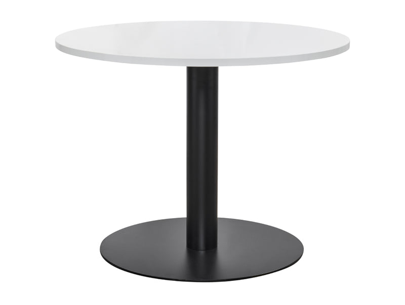 This round white top dining table offers a clean, modern aesthetic perfect for any dining space. It features a sleek, round tabletop in a crisp white finish, creating a bright and inviting atmosphere for meals and gatherings. Choose from two base finish options to complement your existing décor: classic black for a sophisticated, grounded look, or contemporary brushed steel for a touch of modern elegance.
