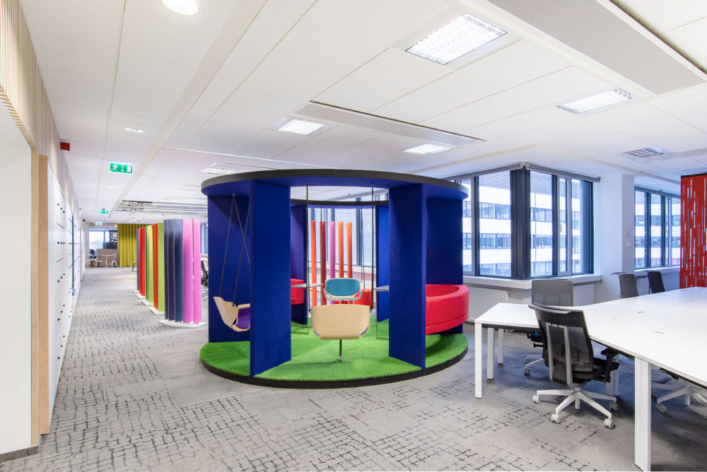 The Social Swing creates an informal meeting place that stimulates creativity at the same time transferring the atmosphere of the park to the office. This is the place where the most inspiring and surprising ideas can arise in an atmosphere of free discussion.