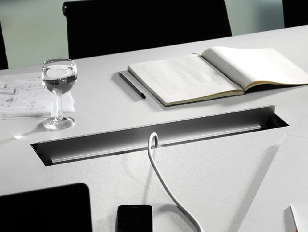 The Top Frame provides access to power and data from any office desk. With silent-open and flush fitting, it's easy to integrate into your desk.