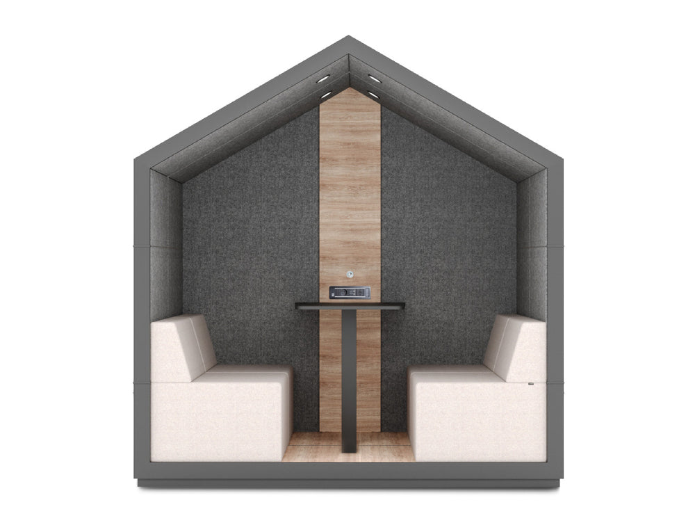 Treehouse collection includes 1, 2 and 4-person booths in closed and open style versions. The application of Treehouse booths in arrangements makes it possible to set aside some space that will provide a bit of relaxation from all the surrounding hustle and bustle.