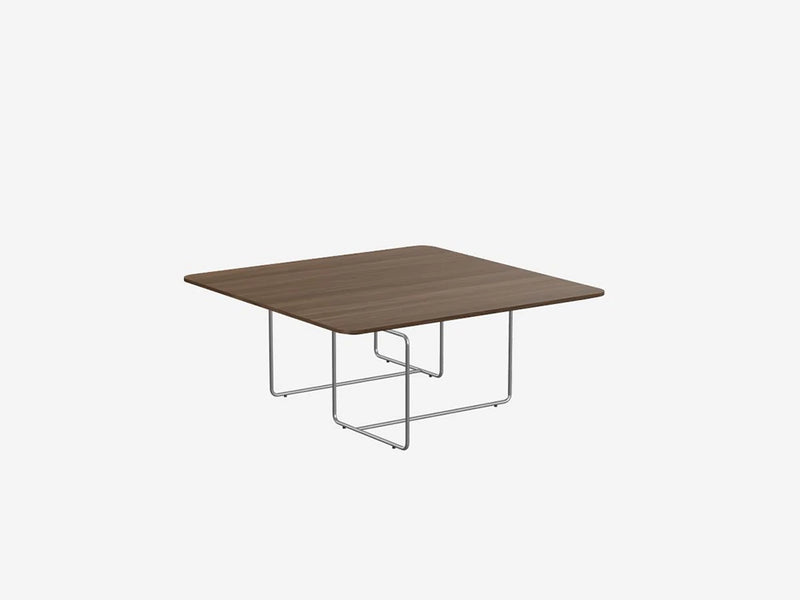 Collection of tables with characteristic oval edges of the table top combined with a square Sectional frame varnished in black or grey. Table top is covered with modified oak veneer in three colours: milk, coffee or cocoa.