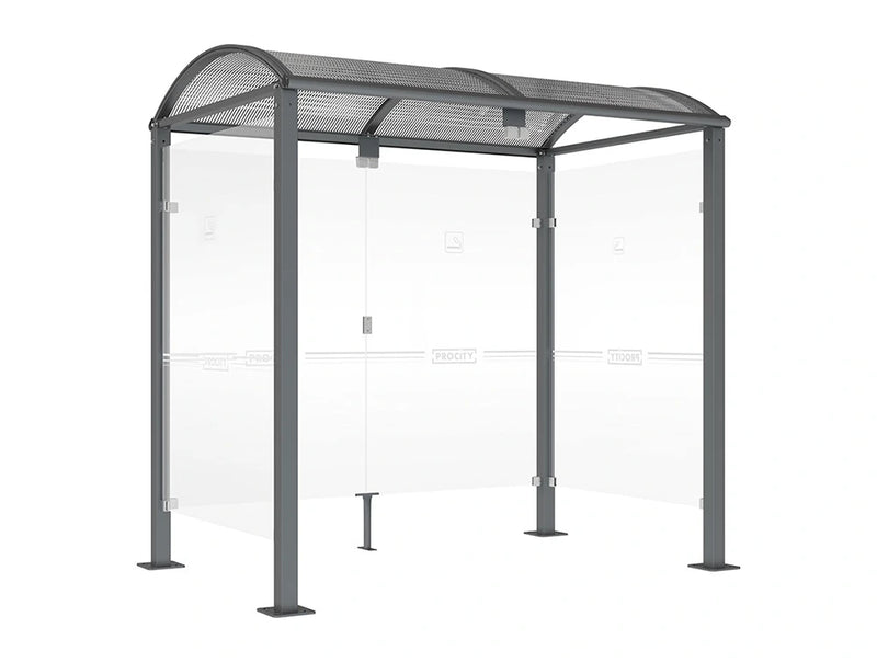 The UK Compliant Voute Smoking Shelter offers a high-quality, weather-resistant smoking area, adhering to UK regulations. With a robust steel and aluminium frame, it features a 6 mm anti-UV polycarbonate dome and 8 mm safety glass panels. The pinch-grip system allows easy panel replacement, ensuring long-term durability. Available in custom RAL colours, it also includes optional ashtray bins for added convenience. The UK-compliant version ensures 50% open vertical surfaces.