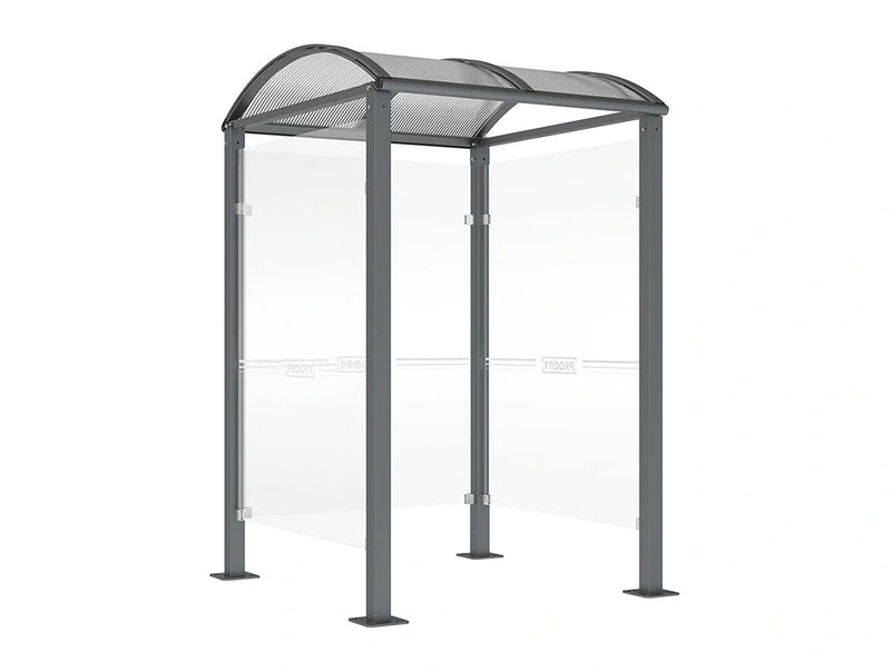 The Voute Pay Point Shelter is a durable and stylish solution for public and private parking areas. Measuring 1560 mm wide, 2500 mm high, and 1560 mm deep, it features an 80 x 80 mm steel frame for stability. A 6 mm anti-UV polycarbonate roof and 8 mm safety glass walls ensure weather protection and visibility. Galvanised steel components are painted in RAL colours for a custom finish. The shelter installs easily on base plates, providing a secure and professional setup.