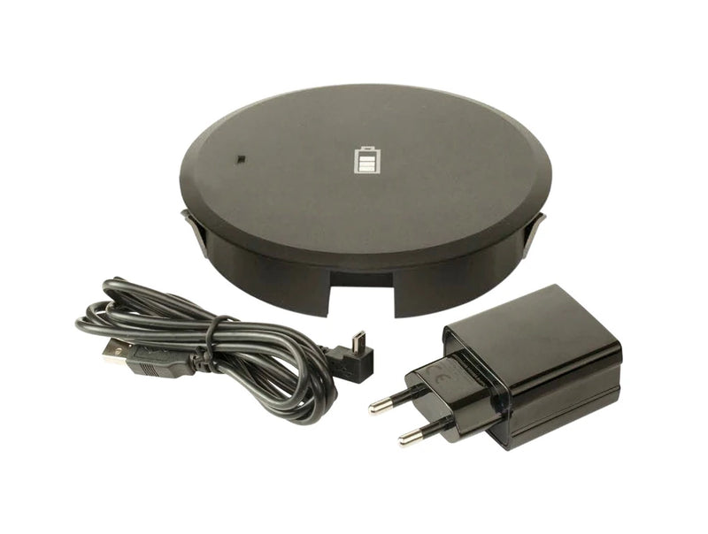 The charger could be mounted into a cut-out and secured from below in the tabletop using clamping claws