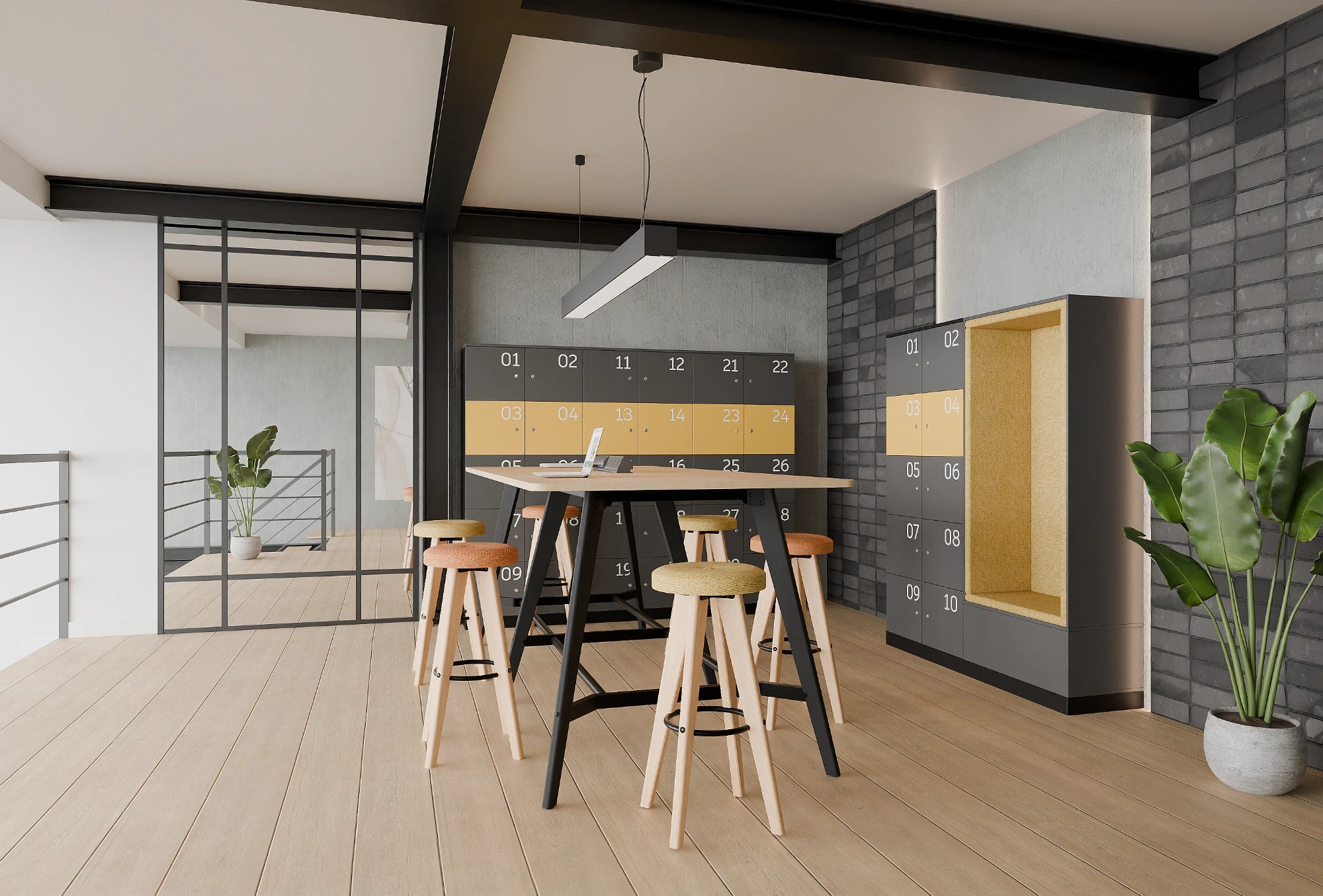 Ws.D Uno 32-Door Locker System with RDIF Lock and Sitting Alcove